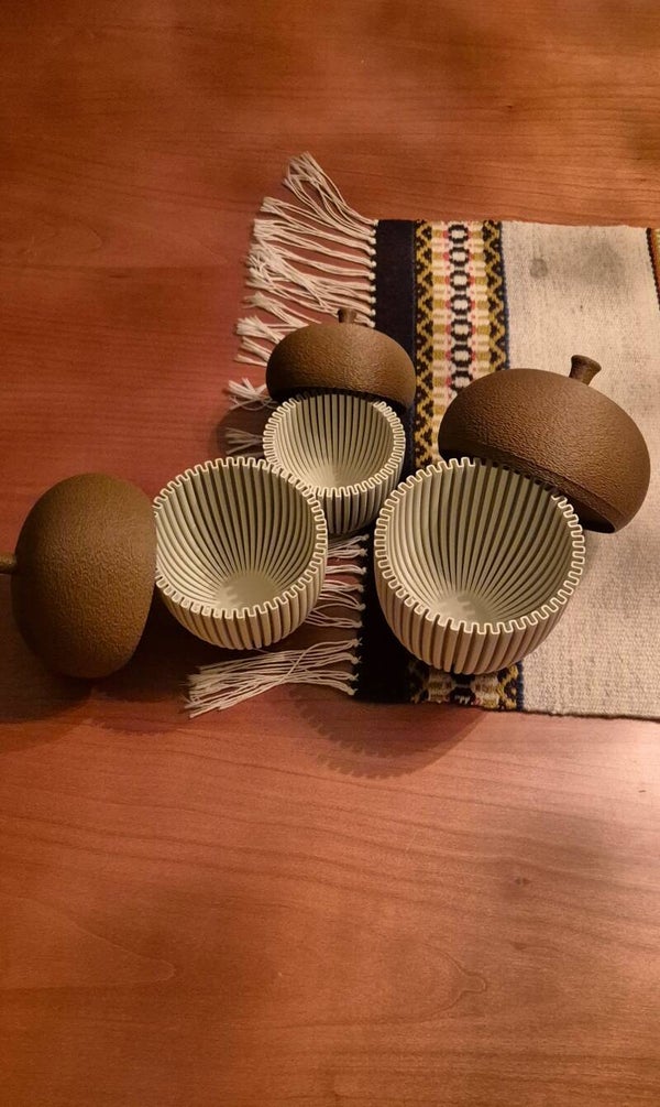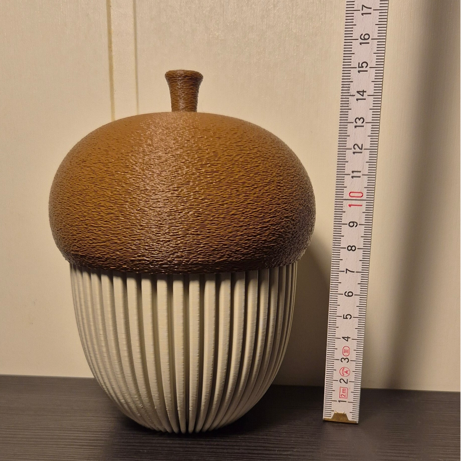 Stor og hol eikenøtt som er både til pynt og oppbevaring.